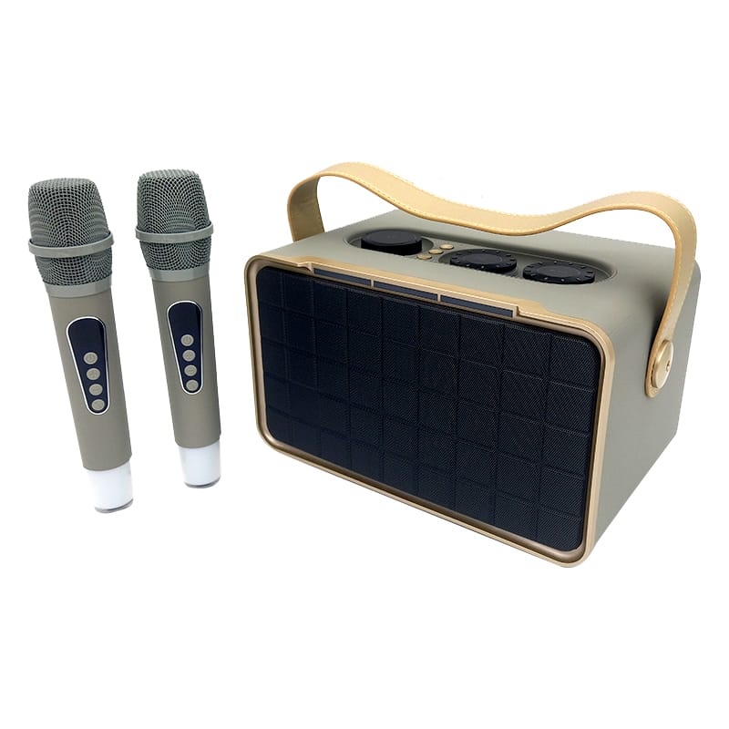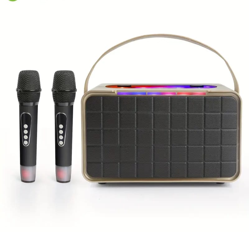 it comes with two wireless microphones for karaoke.